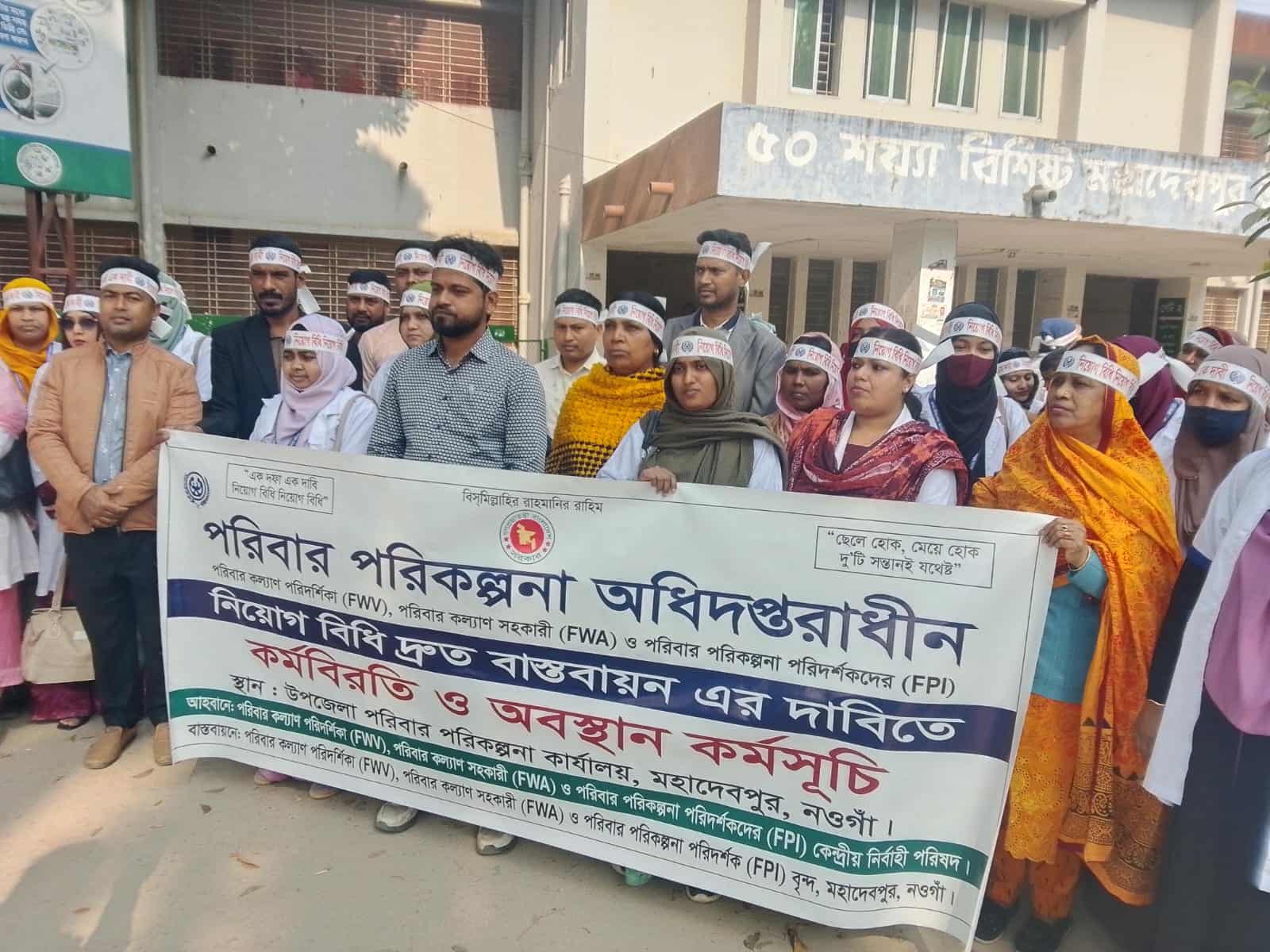 নওগাঁর মহাদেবপুরে পরিবার কল্যাণ কর্মীদের কর্মবিরতি নিয়োগবিধি বাস্তবায়নের দাবিতে আন্দোলন করে৷
